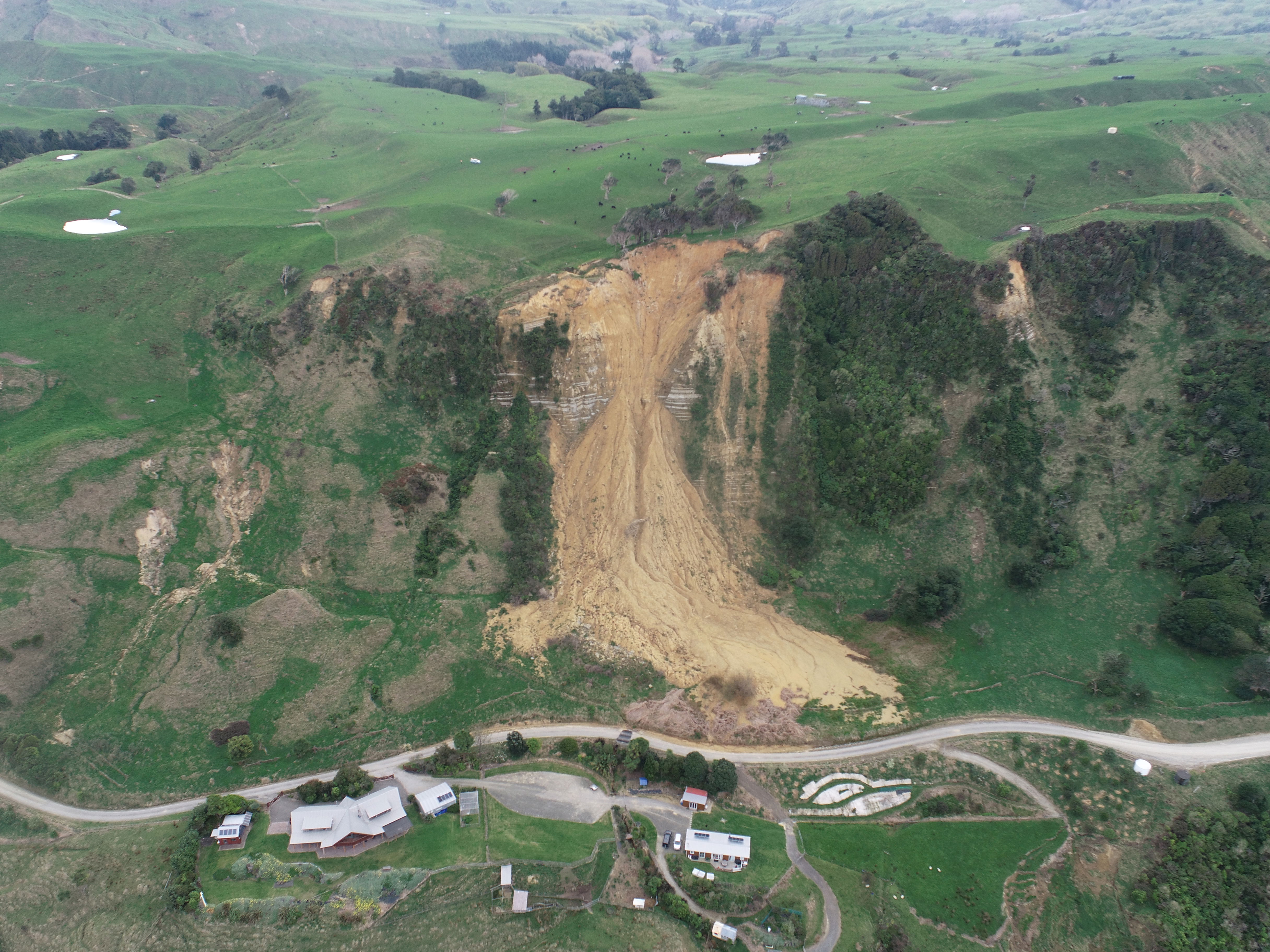 Council principal scientist Dr Murry Cave says an area of 10-metres wide and up to 50-metres long has collapsed from the head of the landslide, with signs of further instability in the head scarp region.